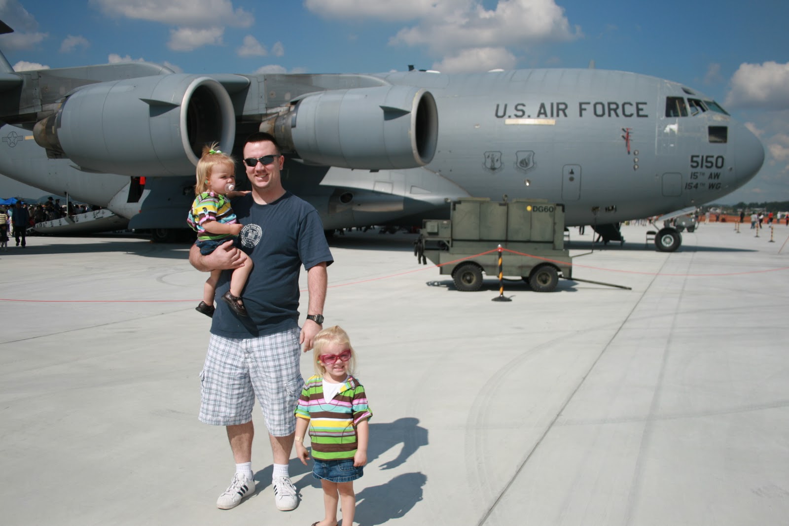today was air power day at the base. the pilots had been practicing for the past two days, so our kids were well versed in what they would experience today. it was rather amazing to see all the people that attended as the base was open to basically anyone. thankfully we grabbed earplugs because we definitely needed them. those planes were so loud. there were helicopters, cargo planes, etc. that you could tour and take photos in. however, it was rather hot today, which meant that the inside of those planes were sweltering. claire and i went inside a couple, but only made it about half way before i decided the sweat beads meant it was time to turn around. it was a fun day. the aerobatic team did an awesome job with their tricks. it definitely gave me the goosebumps on several occasions as well as that urge to fly!